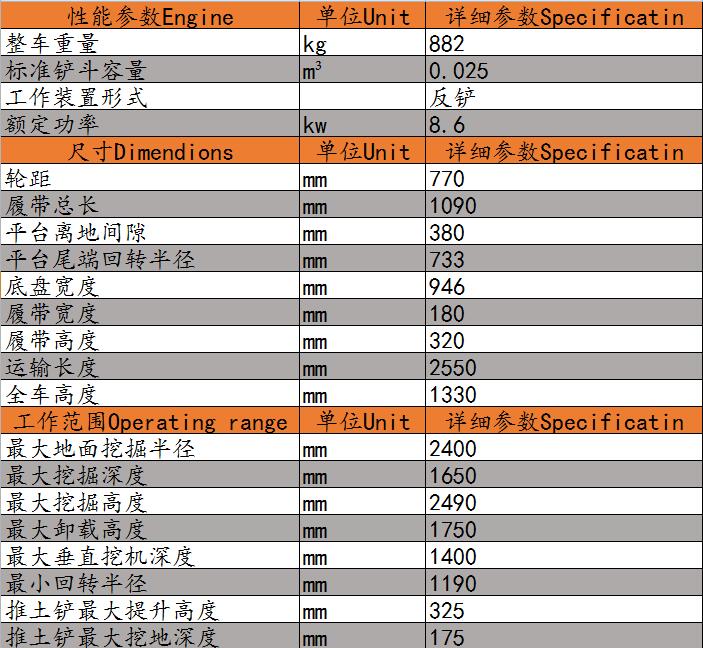 6、整体采用无尾回转设计, 当机体上部回转时,在履带范围内的狭长的区域内可随意进行回转作业,拓展了机器的应用范围,工作效率高。相对于其他机型的有尾设计,回转安全性上具有明显优势。
