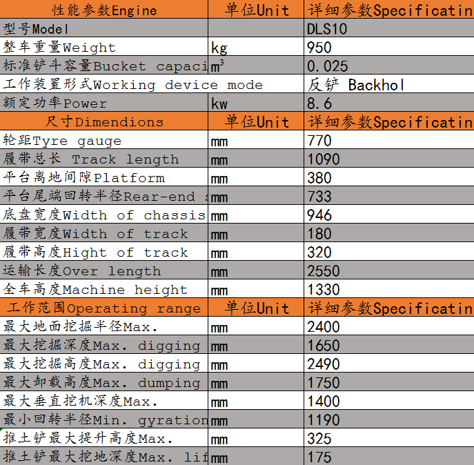 DLS10微型履带挖掘机参数