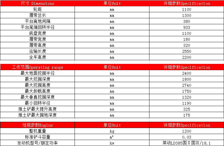 DLS17微型履带挖掘机参数