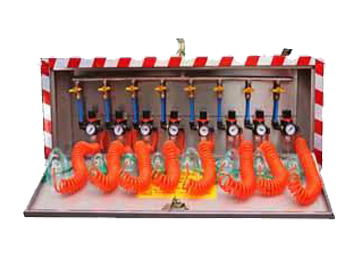 压风自救器一般形成系统后使用,即由若干组压风自救装置安装在同一个地点形成压风自救站,每组一般由3~5个头组成,每个地点装多少个头,应视该工作场所的工作人数而定,其安装头数应大于在该场所工作的人数。该装置系统结构简单,价格便宜,是一种经济型永久性自救装置系统。