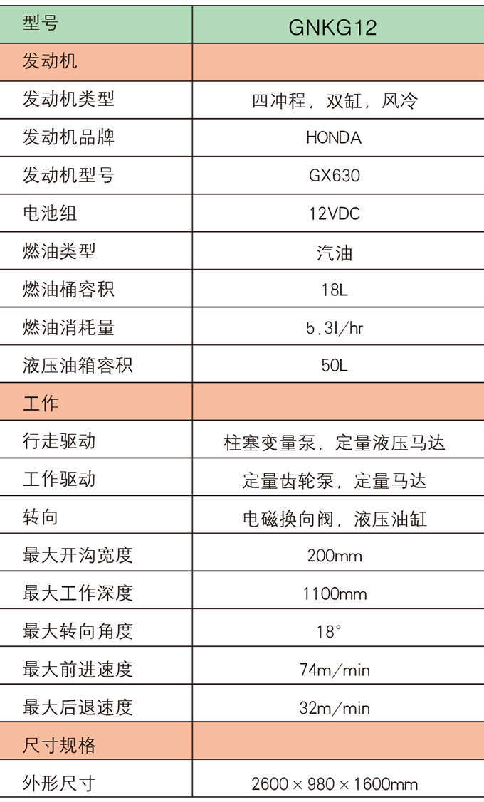 主要用于电缆、自来水管铺设的开挖施工。机器小巧灵活,适用于在环境狭小的条件下开沟。