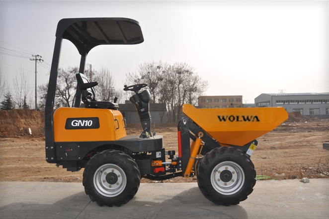 微型翻斗车主要由料斗和行走底架组成,借助斗内物料的重力或液压缸推力倾翻卸料。卸料按方位不同,分前翻卸料、回转卸料、侧翻卸料、高支点卸料(卸料高度一定)和举升倾翻卸料(卸料高度可任意改变)等方式。