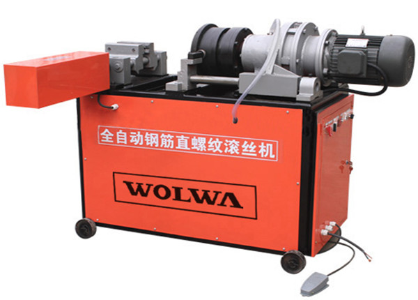 钢筋直螺纹滚丝机是近年来广泛用于建筑行业的一种钢筋加工机械。它就把钢筋端头部位一次快速直接滚制使纹丝机头部位产生冷性硬化,从而强度得到提高,使钢筋丝头达到与母材相同。由机架、夹紧机构、进给拖板、减速机及滚丝头、冷却系统、电器系统组成。