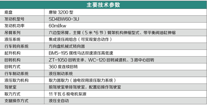 乐虎88国际GNQY-3200型微型吊车自制吊车专用底盘,潍柴4102大功率发动机动力强劲,行车带液压助力式方向机、断气刹制动系统、带有中心回转器可实现360度无限度连续旋转,50锰锻打燧火轨道加工回转支承,转向采用可靠耐用的吊车专用行星减速机,乐虎88国际五边型吊臂专利技术,全液压伸缩式支腿,大跨度幅式H字型支腿大架,起升双速度设计,主卷扬采用8吨液压绞车(轴向柱塞马达)、副钩采用乐虎88国际专利高低速常闭式卷扬机(支持快速放绳),液压系统采用伺服控制(可实现多项复合操作),流线型驾驶室,国际行业低价位。可安装电机泵站,直接以380V电源作动力,节约环保。产品轻便灵活,价位低廉,适用于农村及城乡结合部工作。低价位投资,高档产品回报。为了降低客户的风险,公司还随车给每台产品在中国人寿财产股份有限公司入了一年的与产品同价值质量责任保险,客户可更放心使用。